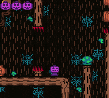 In this demo you’ll take control of PPK, (the Purple Pumpkid), and play through the first of four worlds, the Fall Forest. There you can find four main levels full of candy to discover and collect, an optional bonus level with a unique challenge, and a big bad boss for you to scare to death!